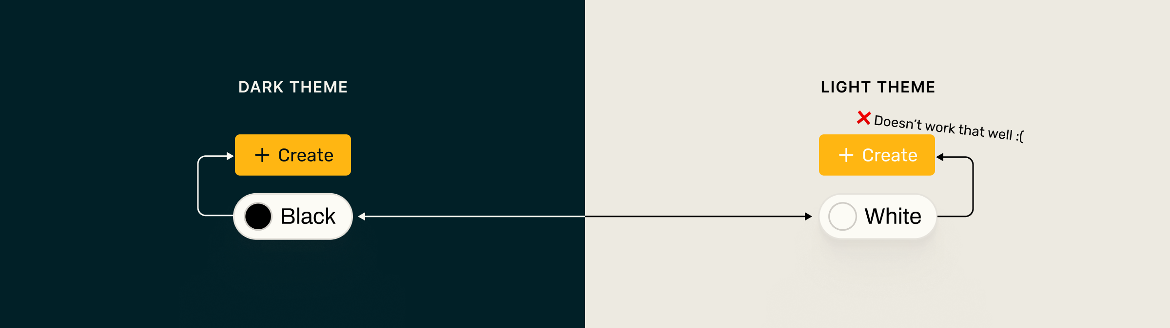 The original theming setup assumed a simple, intuitive rule: when switching themes, white becomes black, and black becomes white.